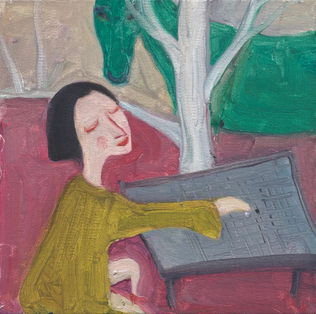 杜占军:马从上古开始就是我们东方人的精神图腾,它代表着自由和奔放。绿色和紫色虽是色彩里面最难驾驭的,但也是我骨子里最忠爱的颜色。画面中的绿马有一种无言的神秘和静默感,我也曾想自己是古代武侠小说里侠客,骑上这匹绿马去行走江湖。