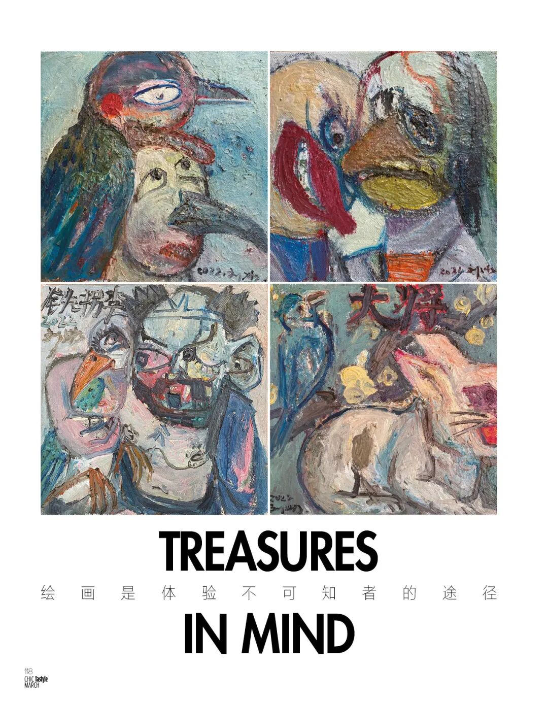 2022年,刘冰举办了一场名为“入山寻宝”的个人画展。深山幽谷曾牵引着他的想象前往种种秘境,而透过他奇异的画作,又仿佛能窥见他神游山林的踪迹:青绿色山前的钟馗,立在虬枝上鹰隼,盘坐听松的罗汉⋯⋯近两年来,刘冰在宝华山下寻到一处适合的房子做画室,他在这里为童稚时的田间虫趣和对深山的好奇向往“营造出一个属于自己的场”,同时如他所言,山居的日子让他的画有了“山林气”。