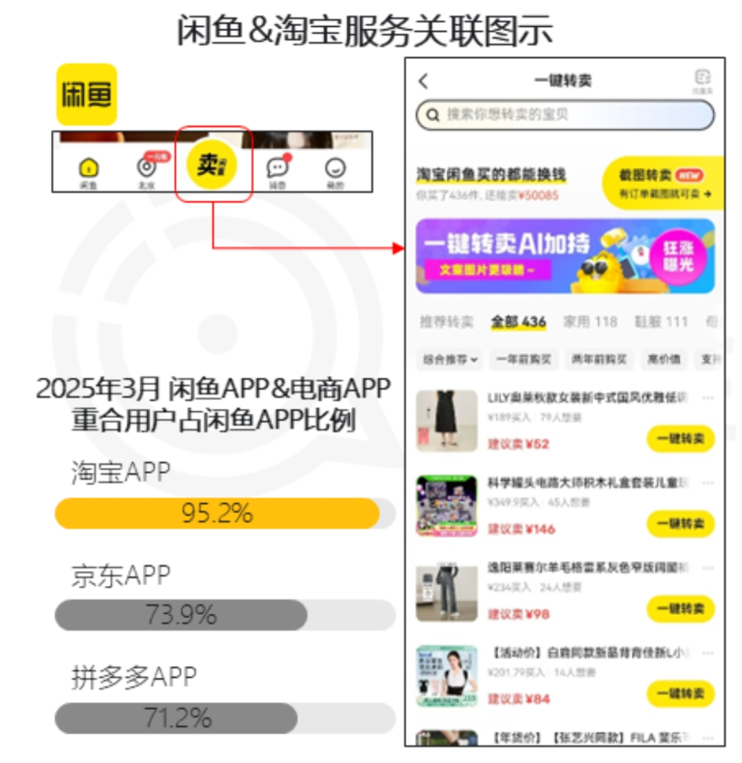 平台间全链路协同深化,小红书为淘宝导流美妆订单占比提升,抖音为京东3C品类带来潜在客群;闲鱼与淘宝形成“新品购买-闲置转卖”闭环,循环订单量同比增长。