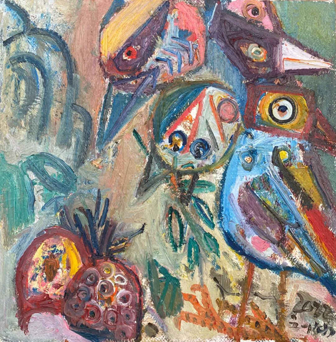 《排排坐吃果果》30x30cm 布面油彩 2022