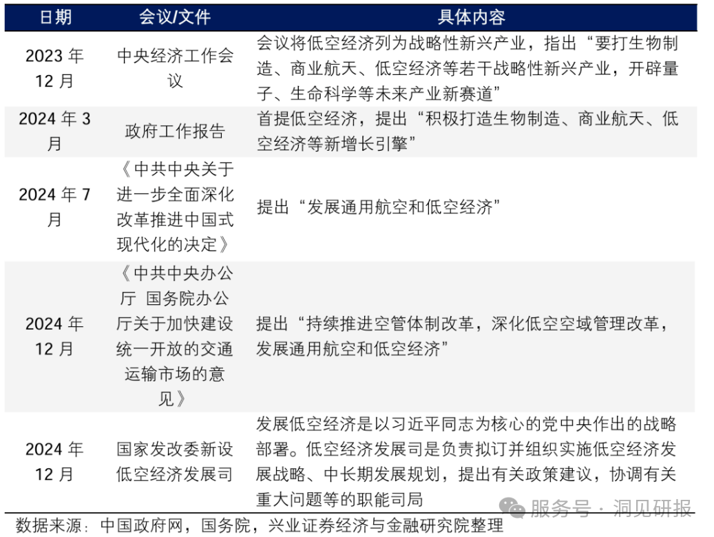 2023年12月,中央经济工作会议把低空经济列为战略性新兴产业。2024年3月,政府工作报告首次提及低空经济,将其定位为新增长引擎。2024年12月,国家发改委新设低空经济发展司,负责制定和实施相关战略政策,以统筹推动产业发展。