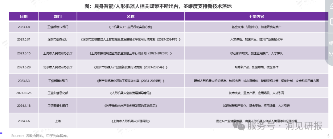 人形机器人作为新兴产业,国家高度重视。2023年以来,国家积极布局政策,主要围绕加快具身智能机器人重点场景应用、加强行业标准规范建设、设立专项财政与基金支持、加速人才引进与技术培育等方面,通过政策推动产业长期建设。