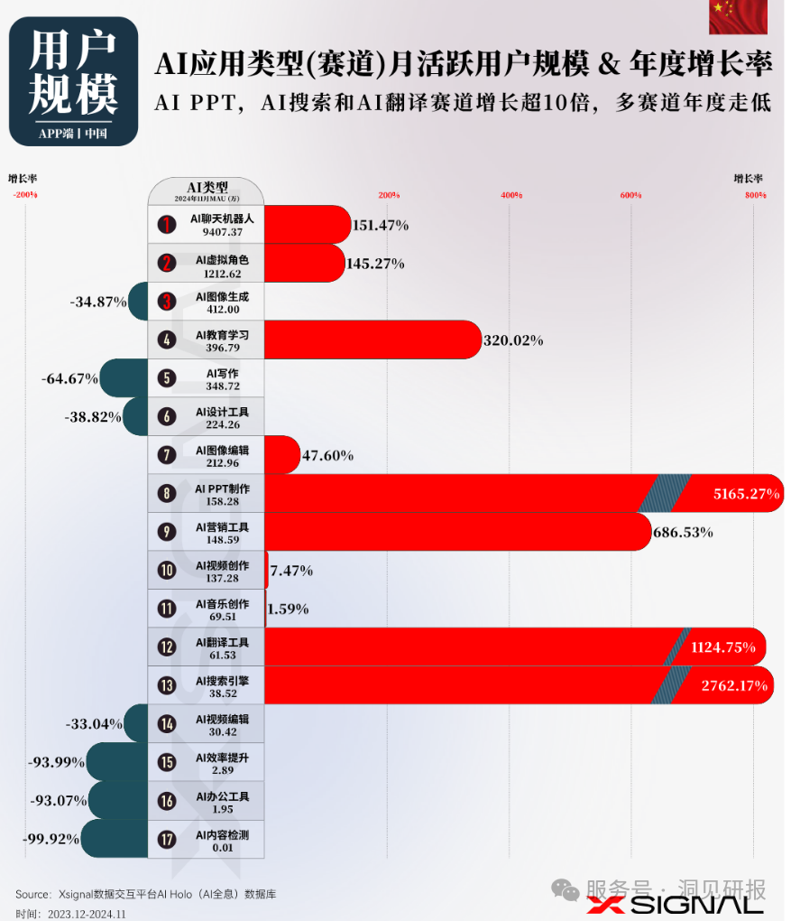 2024年,中国AI应用行业迎来发展元年。随着生成式AI的发布,众多传统互联网公司和原生AI公司纷纷入局,推出了各自的AI应用产品。