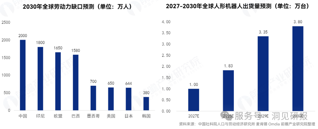 人形机器人的量产趋势正在逐步显现。人形机器人有望缓解劳动力人口短缺这一局面,未来市场对人形机器人的需求将会持续上升,预计到2030年,全球人形机器人出货量将达到3.80万台。