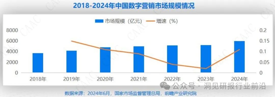 在过去的二十几年间,中国数字营销规模经历了飞速增长。特别值得注意的是,随着互联网的广泛普及和网民用户规模的快速增长,我国的数字营销行业市场规模也持续攀升。