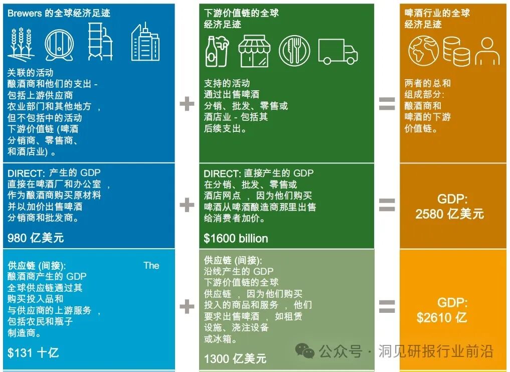从农作物到消费者,啤酒产业覆盖了全球经济。啤酒首先是农业产品。酿造过程始于德国、美国中国、阿根廷、法国和南非等国家的农民,在全球范围内种植了超过60,000公顷的土地,以生产近120,000公吨的酒花和5700万吨大麦。