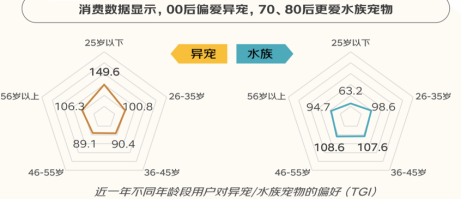 00后偏爱异宠,养水族/异宠的主要动因和猫狗不同,为内容创作和彰显个性。从人群结构上看,25岁以下人群偏爱小宠/异宠,而36-55岁人群更爱水族宠物。相比猫狗宠物主,异宠和水族宠主更关注彰显个性审美与社交表达。他们在“彰显个性和审美”、“内容创作/社交表达”等维度显著高于平均水平;水族/异宠用品呈现景观化、桌面化、智能化趋势。