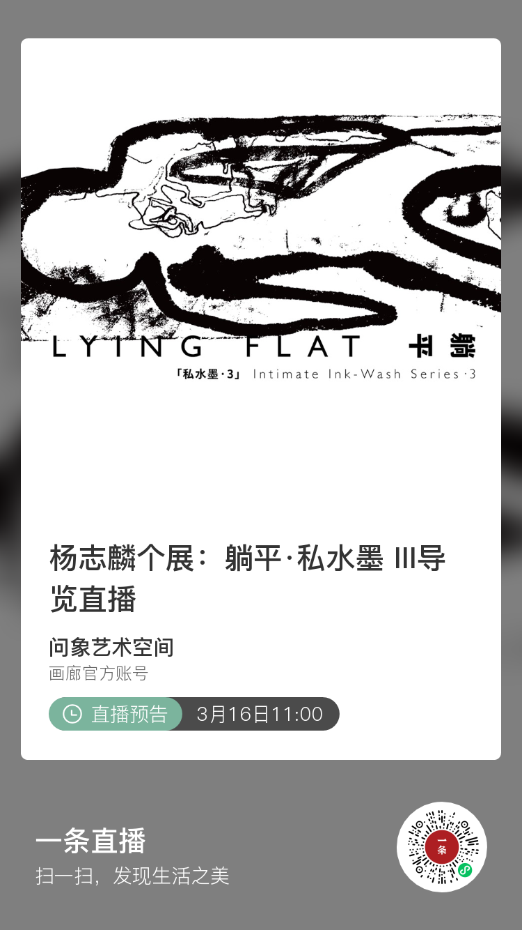 杨志麟先生的私水墨具有强烈的个人主义观。《躺平》是继《体液》《自拍》之后的第三回展,其叙事性体现了人性的深刻。躺平通常有两层含义,一是反应于个人与生活内卷;二是反应于集体与意识方式。通过水墨将内容聚焦于私生活,交汇于“后当代艺术”的思想叙事与精神谱系,为自我打开通往自由之领地。他的作品中,《小躺平》在异形的抽离中反映个体与生命的尊重,试图将人的遭遇在内卷中得到心灵释放,其水墨形式的非表现与思想内容的非抽象,以此消除任何假定的自由。《大躺平》与《躺平·符号》的叙事方式尤为卓绝,自觉地超脱于当代,区别于水墨观念的一般意义。