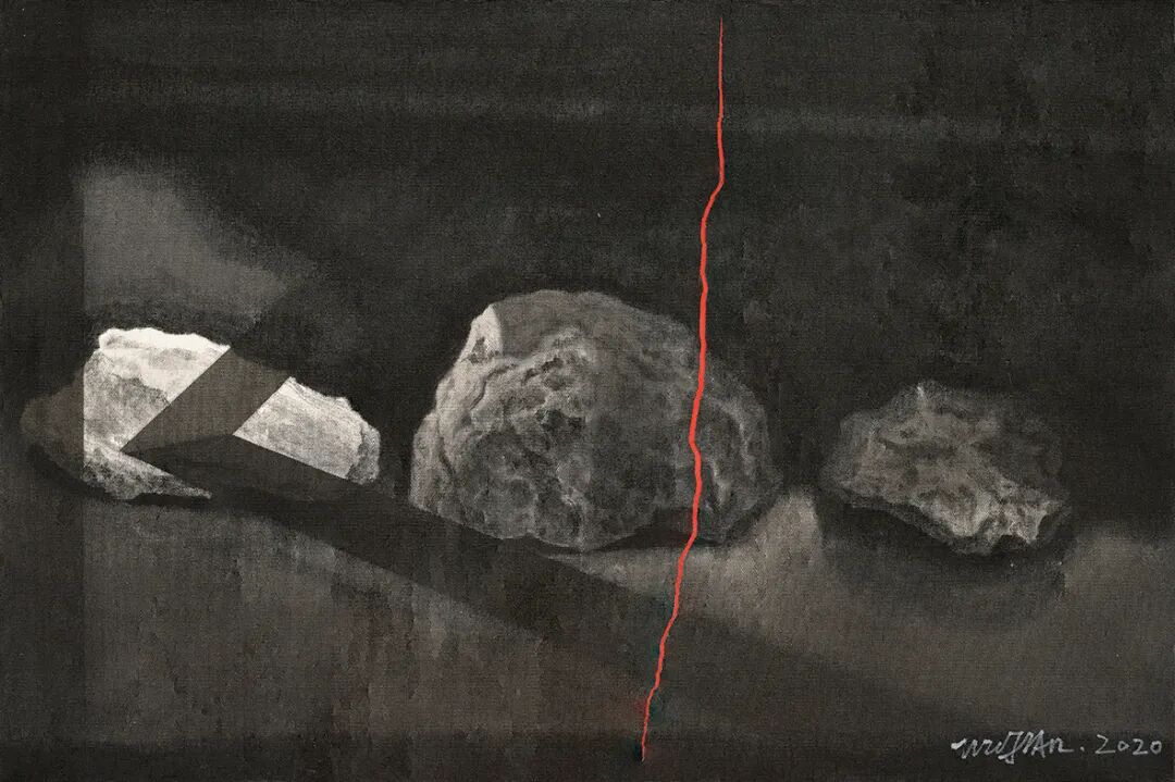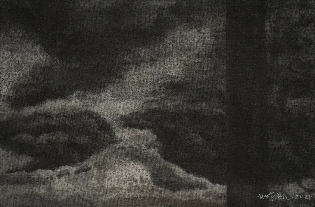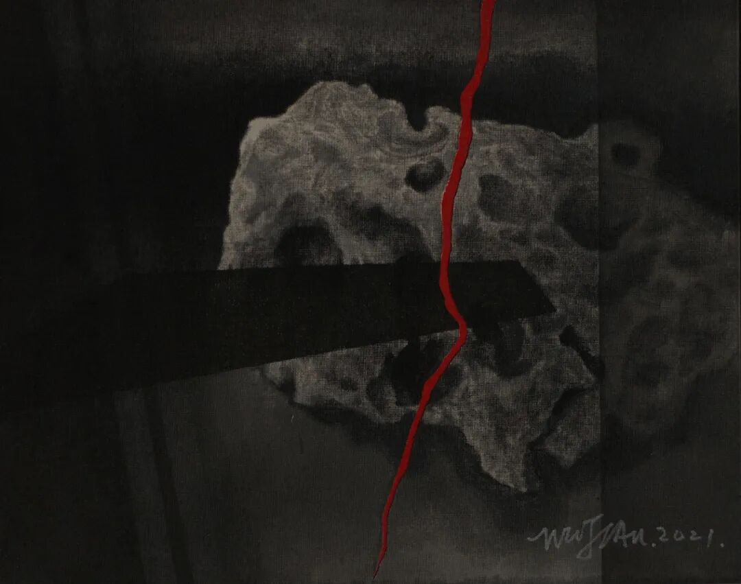 艺术,很多人都说看不懂,尤其是当代艺术。但其实很多艺术家的作品没有那么难理解,他们多数还是在反应自己的所见、所感,也是他们内心想抒发的情感。吴翦的作品就好像是一卷卷黑白胶卷,记录生活、记录自然,只不过他将手中的相机变成了画布和画笔。可能有人看见了吴翦的画会觉得他是一个“战地记者”,但其实他画笔下的一切都是在记录自然与人类的对话,也是记录地球的自然变化。他在画面中所展现的那些具有张力,且有一定波动感的山川河流,矶石顽块都具有潜在的张力,是那种山石崩裂开的感觉,如果你仔细去看,去“听”,你的耳畔会有滚滚的轰鸣。