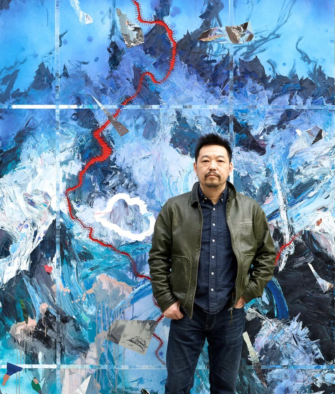 当你远远的看见作品,你会被吴翦画作中磅礴的气宇所震撼,但是也会被画中鲜艳的红色所勾动。走近时,你就会发现那抹猩红色其实是画布缝补后所填补的颜色。当你直面画作中的黑白与红色的比例时,你会被吴翦的艺术所感动,那种震撼是艺术家从心而来的一种映射,是精神的表达。你或许看不懂他的作品,但是你一定能从中感受到艺术家的所表达的情感。