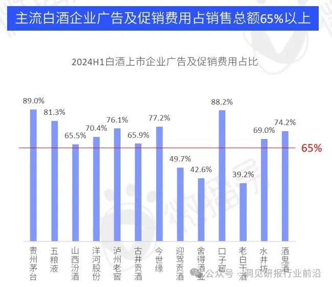 近七成白酒企业持续增加广告及促销费用,广告营销比重大。