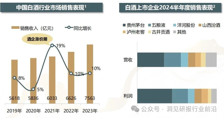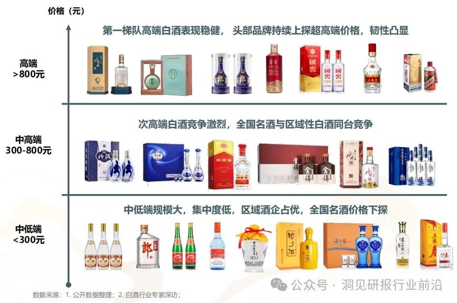 白酒市场呈现出更为明显的分化趋势。高端白酒品牌,如茅台、五粮液和国窖,凭借其高端定位与品牌力,市场表现依然坚挺,而中低端白酒市场竞争尤为激烈,全国名酒与区域性白酒同谷竞技,争夺市场份额。