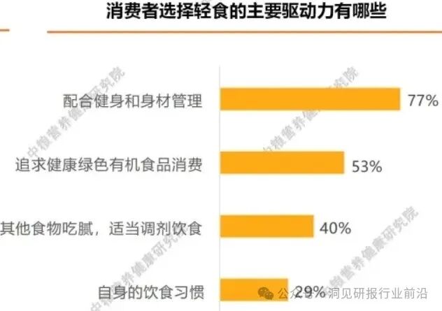 消费者食用轻食的主要原因是健康功效,71%的消费者了解且吃过轻食。