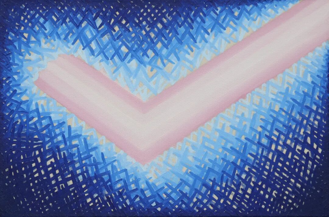 在《如幻》《刺破的幻觉》《漂浮的存在的》《通道》等作品中,赵兵又进一步跳脱出现实,消解空间,模糊边界,用融化的笔触而非具体的形态完成了也许是在梦中,又或许是在虚幻世界中的“所见”的描绘。阿德莱因哈特曾说“对于美的艺术来说,他是非呼吸,非生命,非内容,非空间。”赵兵在这几幅作品中深度空间的消解让观者看到了抽象表现主义的影子,浅空间的忽远忽近与不可捉摸营造出温和又极具节奏的脉动感与流动感,万花筒般的图状在画布上呈现出流淌融化的动态,将“幻”的感受延伸出画布,像是温柔却有力的邀请,裹挟着观者进入脑中的幻象。