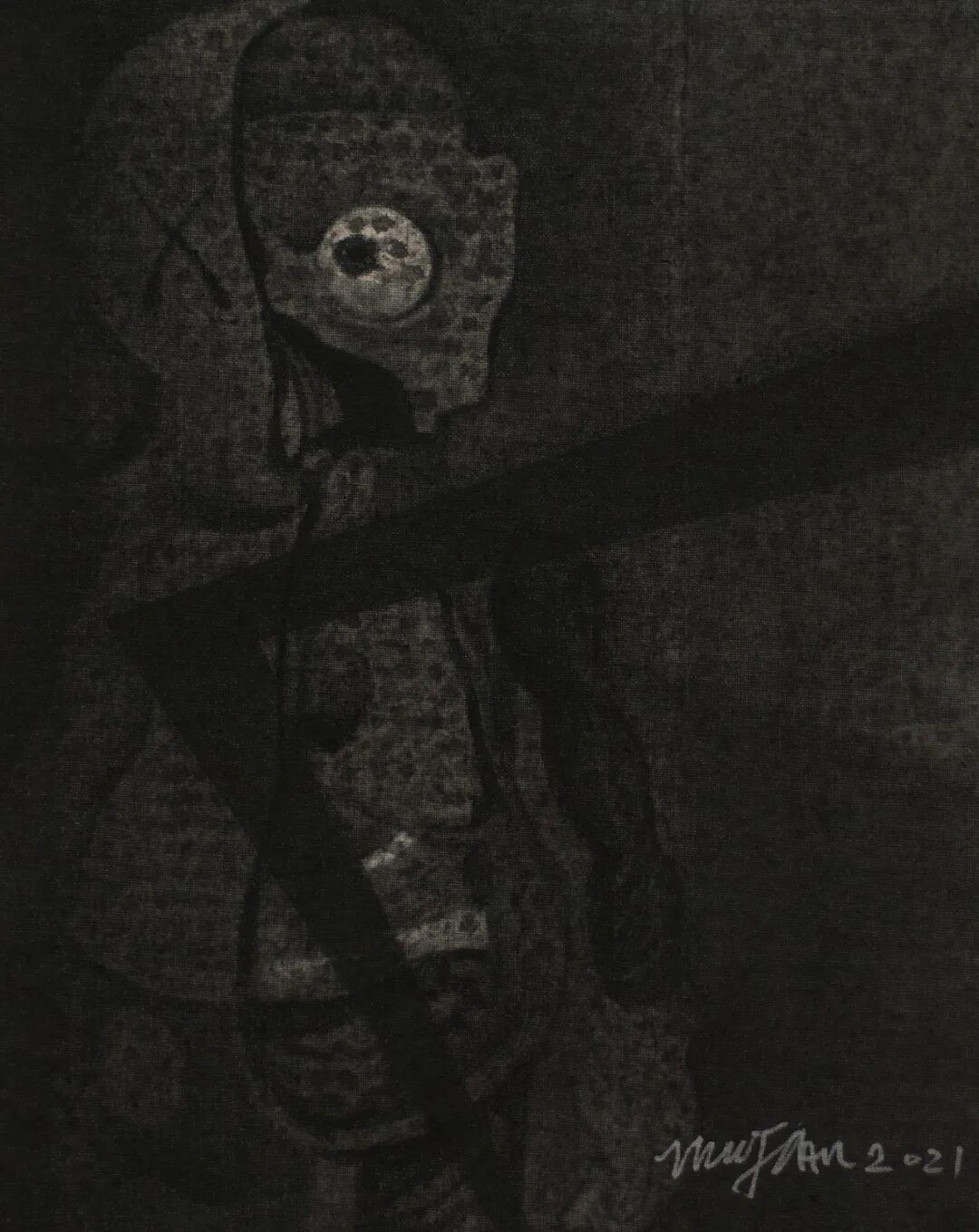 从清末闯关东开始,东北成为了中国粮食的主要产地。民国时期对于东北的地质勘探之后,大量的矿产资源,逐渐让东北由农业重地转型成为了工业大省。从90年开始,经济中心南移以后,东北的产业开始落寞,人也随之离开了那片土地。虽然人走了,产业没落了,但是建筑还存在。那些年,那些人建设起来的一幢幢房屋,有些成为了地标建筑,有些已被拆除,有些变成了新的建筑或者公共设施。这次展出的两个系列作品与拆迁老旧建筑相关联,吕喆将旧物加以利用变成了他艺术作品中的一部分。《补丁》《围墙》这两件作品将老式的雕花窗棂加以利用,变成作品的内框,再以木框装裱是非常新颖的艺术表达方式。