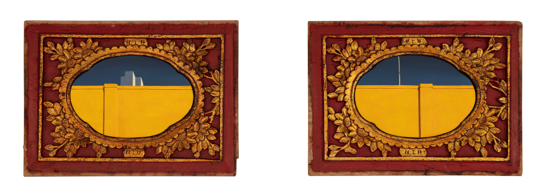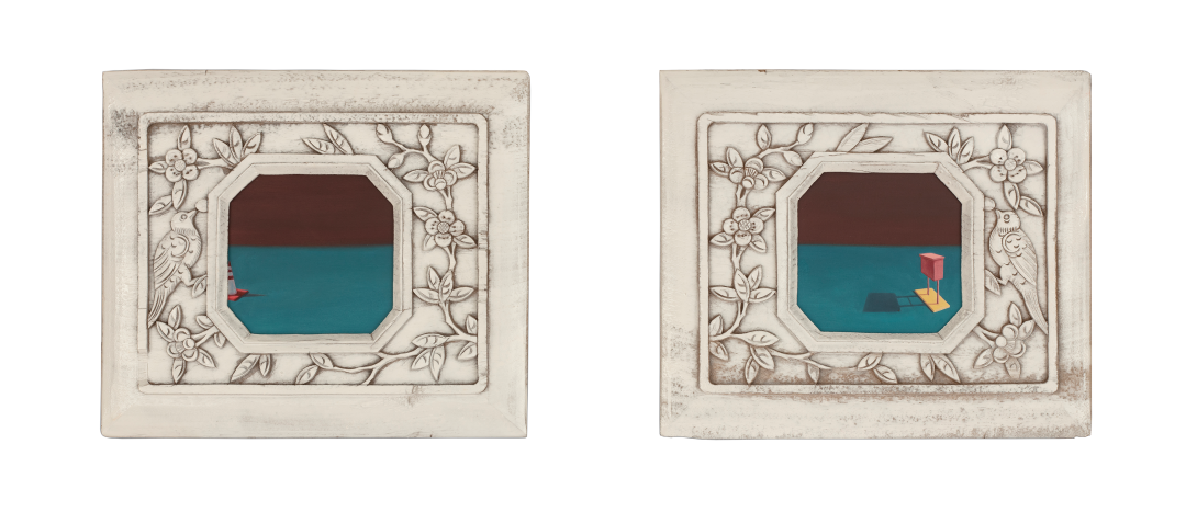 《围墙》高密度模型用木板 旧花板 有机玻璃 木盒装裱 23x16cmx2 2021