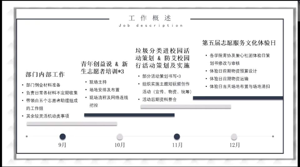 细化活动安排和分工,提高部门工作效率;加强志愿者助理能力培养,让部门的志愿者助理们更加全面的了解工作流程。