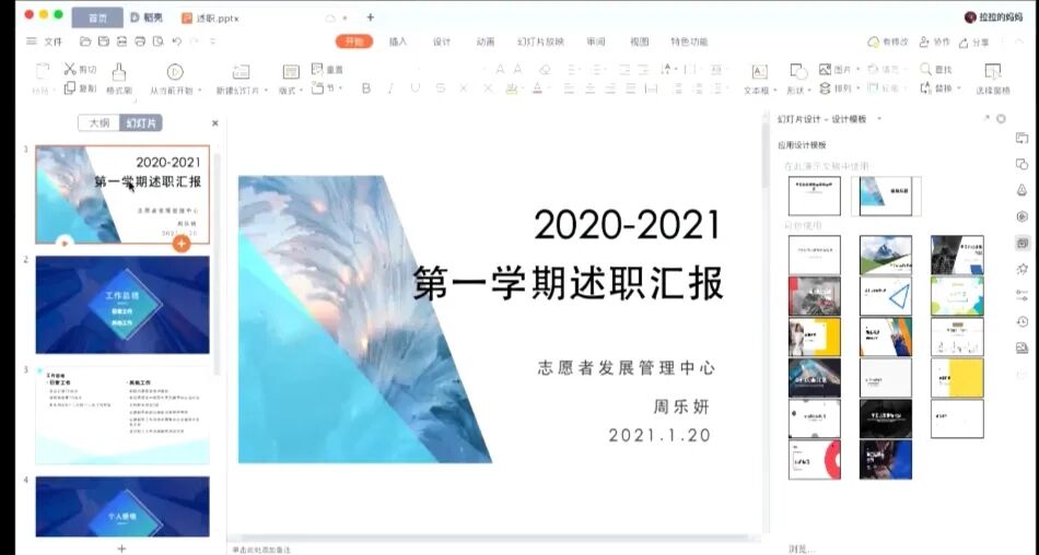 “在担任宣传中心副主任以来,我的个人能力得到了明显的提升,并且责任意识有所加强,但工作安排中仍存在一些不足,下一学年会进行相关调整。”