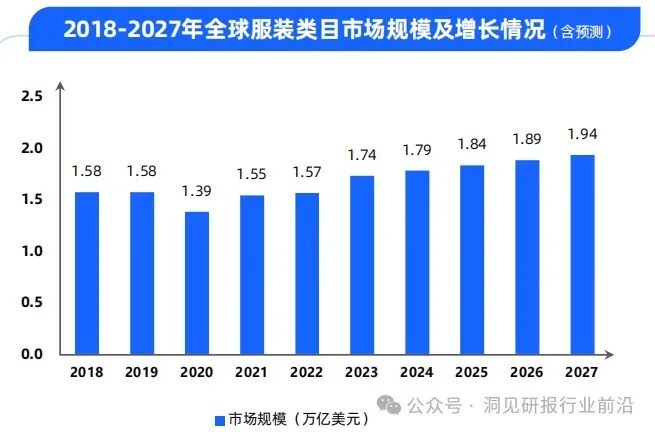 2023年全球服装类目市场规模达到1.74万亿美元,同比增长达10.3%。