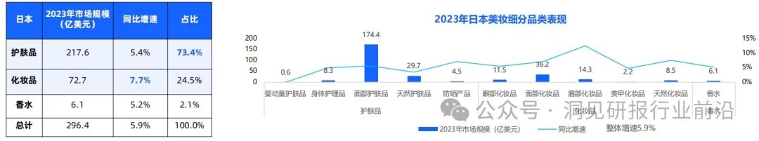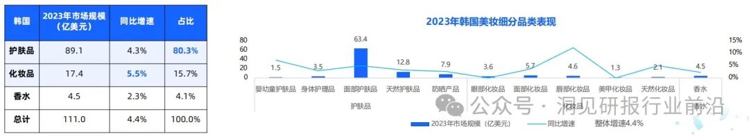 护肤品是日韩美妆消费的绝对刚需,2023年护肤品赛道大盘占比分别为日本73.4%、韩国80.3%,其中面部护肤品贡献比例超七成。远高于全球平均水平53%。