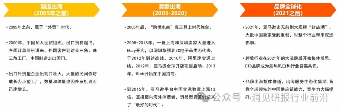 中国消费品牌的全球化,总体上可以分为三个阶段:即“制造出海”、“卖家出海”和“品牌全球化”。