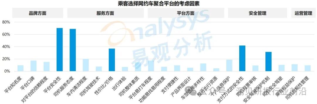 由于聚合类平台司机准入门槛低、对司机背景审核宽松、接入的小型平台存在管理不完善等情况,乘客对聚合类平台的安全性和服务体验存在一定的担忧。