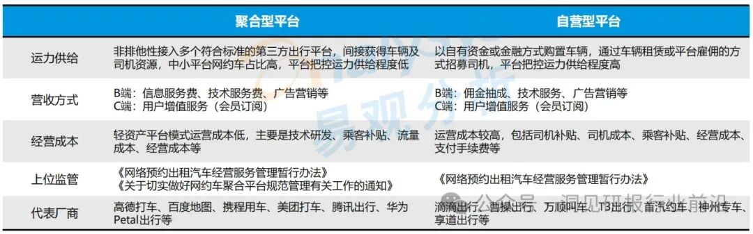 从平台性质来看,市场上目前以自营型和聚合型平台为主面向消费者提供服务,以不同优势切入市场,从不同维度满足网约车消费者的差异化、多场景出行需求。