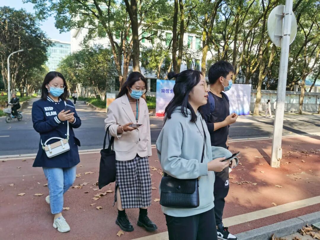 下午两点,在我校经管青协成员的带领下,中南财大的同学前往桂子山校区,先后勘察西区篮球场、恽代英广场、文华公书林、图书馆、东区小树林等地,了解活动场地的范围和人流量。随后,两校同学一同前往南湖校区进行下一步的踩点察看。