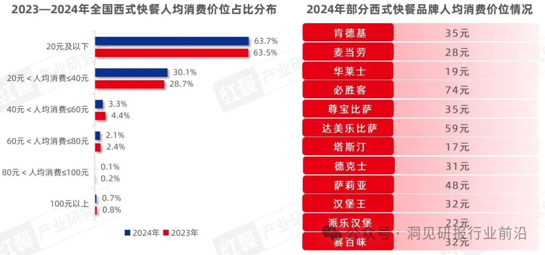 从人均消费上来看,40元以下仍然是西式快餐消费的主力价格带。