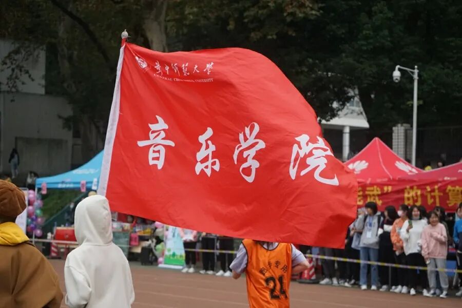 早上八点整,女子1500米项目准时开始。数名陪跑志愿者手举音乐学院院旗,以接力的形式紧跟在运动员的身旁,并及时观察运动员的身体状况有无异常。在赛事进行到中后期,热血沸腾的场景感染了现场的其他同学,音乐学院许多同学们也自愿加入了陪跑行列。