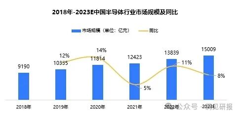 随着全球电子制造业向发展中国家和地区的转移,中国的半导体行业也实现了快速增长。从2017年的7885亿元销售额增长到2022年的13839亿元,预计到2023年,中国半导体行业的市场规模将进一步增长到15009亿元。