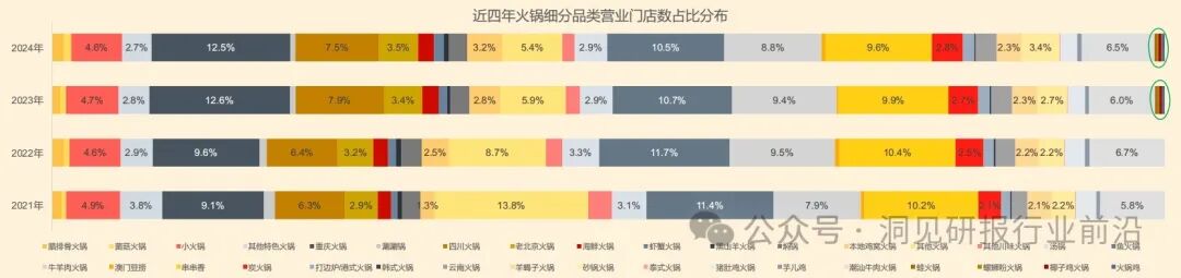 川渝火锅门店数量占火锅全品类的31%+,2023年较2022年同期相比,川渝火锅门店数增长超15%,2024年3月与2023年基本持平。