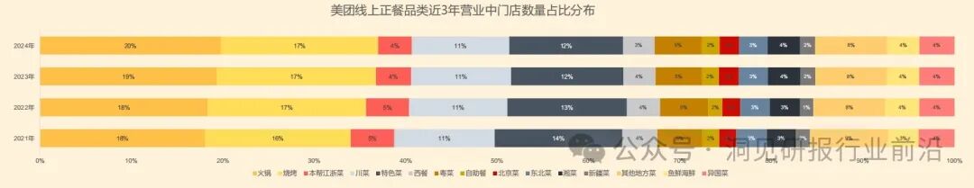 截止2024年第一季度,火锅门店数在正餐门店数中占比达20%。