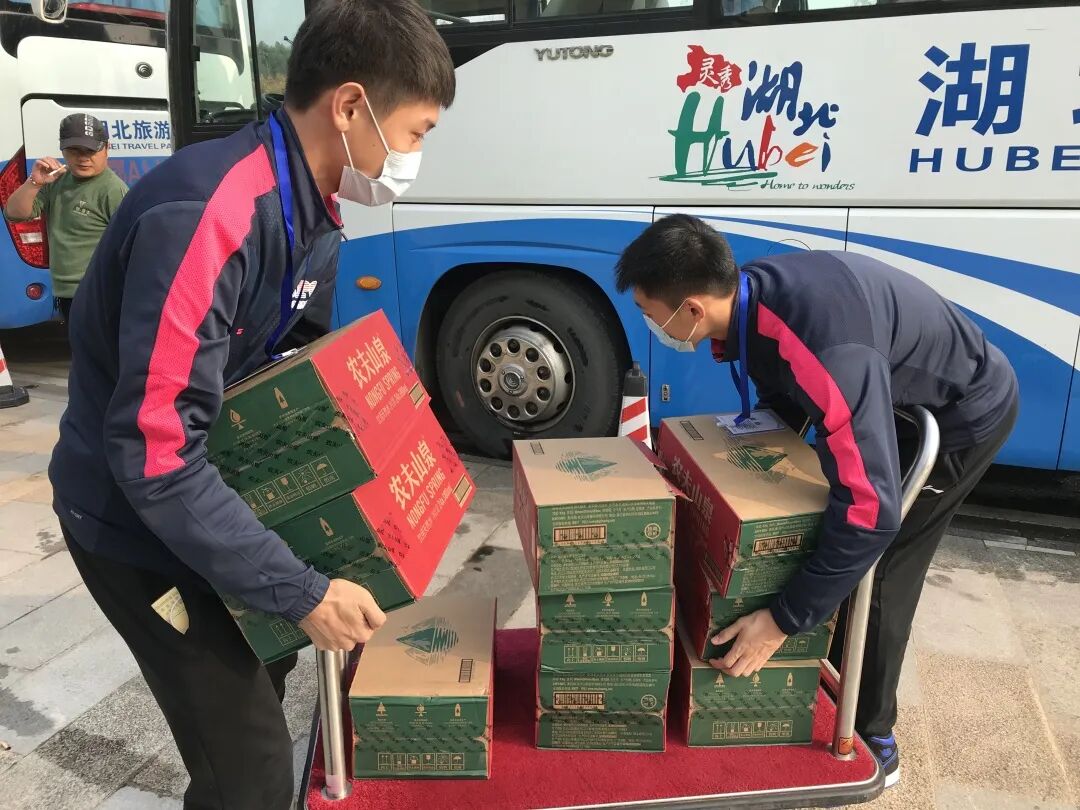 10月30日是青博会开幕式,蓝鲸们6点半从学校南湖校区集合前往湖北省体育局统一前往会场,并为车配备物资后,引导来自全国各地的450余名嘉宾乘车。