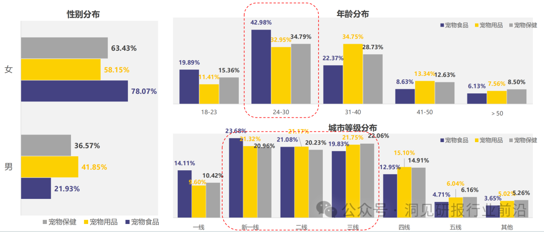 宠物行业的核心消费者群体正在发生变化。宠物保健品的消费群体以24-40岁的年轻群体为主,且女性消费者占比更高。这一群体不仅对宠物的健康和营养有较高要求,还更倾向于通过线上渠道购买产品。