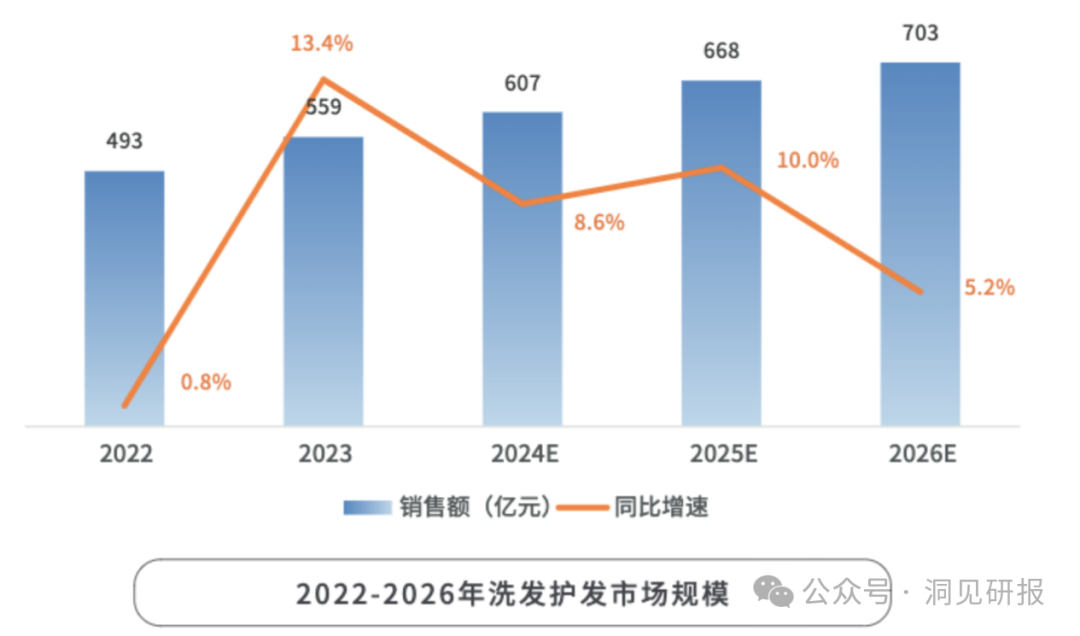 截至2023年,中国洗发护发市场规模达到559亿元,同比增长13.4%,预计2026年将进一步增长至703亿元。