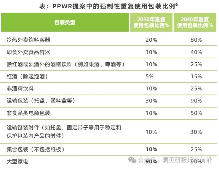 在可重用包装方面提案拟定了外卖饮食包装、电商包装等强制性重复使用包装比例。