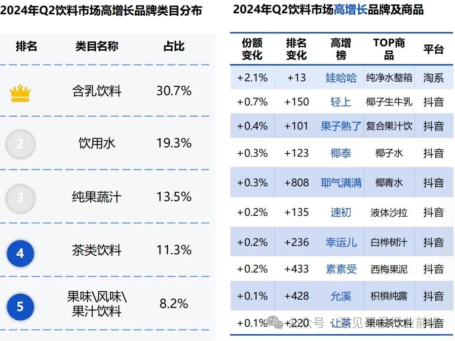 2024年Q2饮料市场整体增长态势良好,全平台销售额同比增长6.4%。