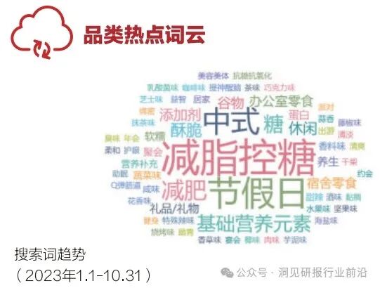 从消费者关注点来看,健康、功能性的休闲零食类产品逐渐引起消费者的关注。一方面,消费者对零食的健康价值属性“减脂”、“控糖”等诉求为关注的热门;另一方面,伴随着国潮的兴起,消费者对于中式原料、食提出了更高要求,材在零食中的应用也产生更高的兴趣。