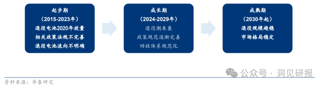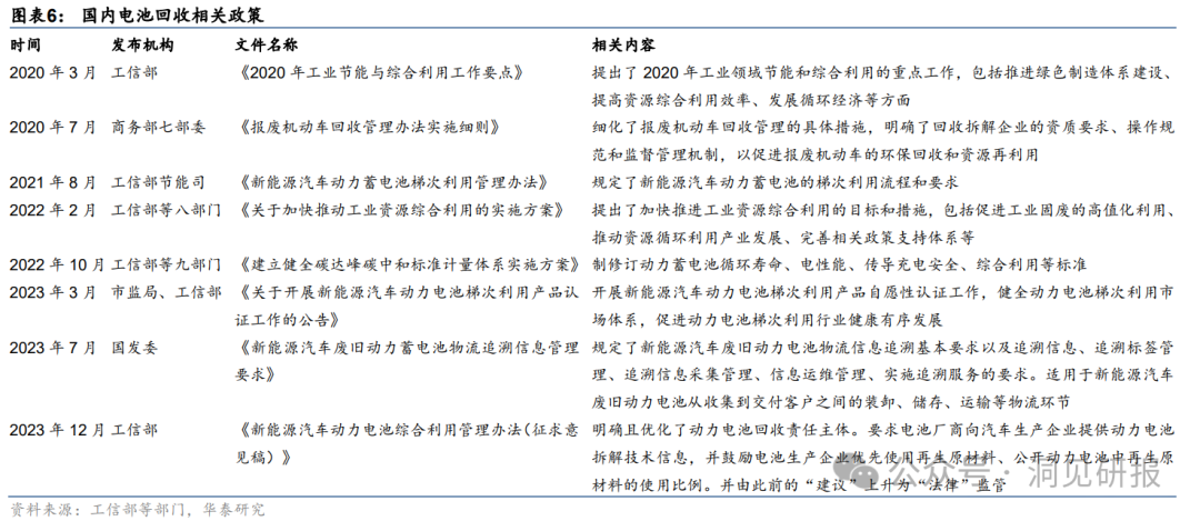 据华泰证券,我国电池回收产业已迈入成长期,相关政策规范逐步发布,回收体系正在建立中。