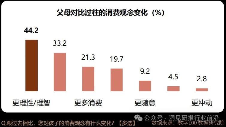 调研显示,44.2%父母表示自己的消费观念相比以往更加理性/理智,希望将钱花在更有用的地方,对支出的把控更加严格。面对母婴产品的选购,消费者正经历从笼统“买大牌”,向明确具体需求、经多维度考量后,按需、按量找寻解决方案的“理性”消费转变。