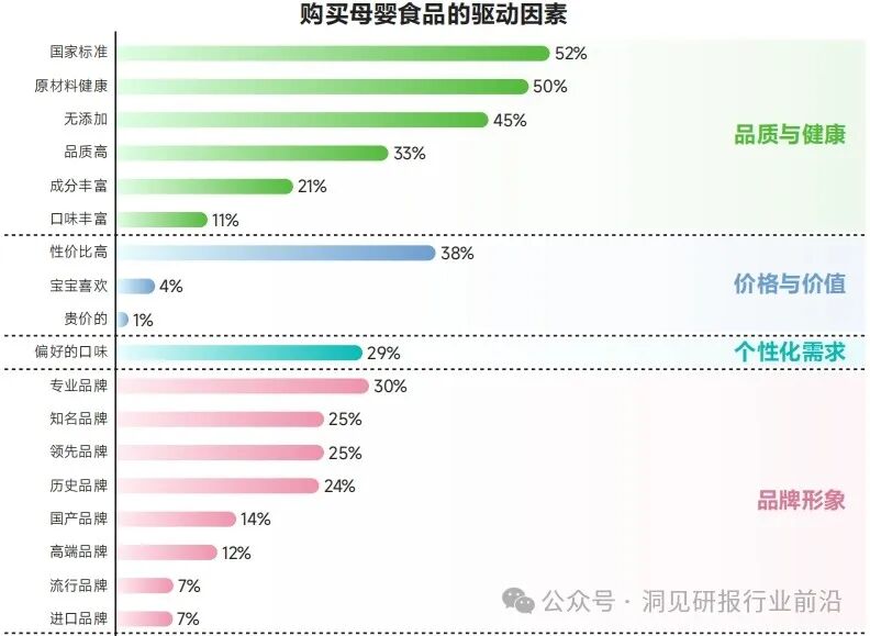 母婴食品消费最关注品质与健康,需要足够的食品安全感,及对品牌形象的认可。