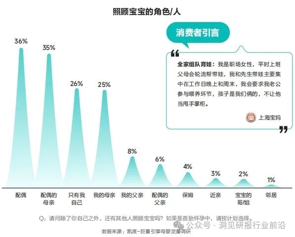 妈妈仍是养育照顾孩子的主力,配偶是不可或缺的成员,全家组队育娃渐成主流。