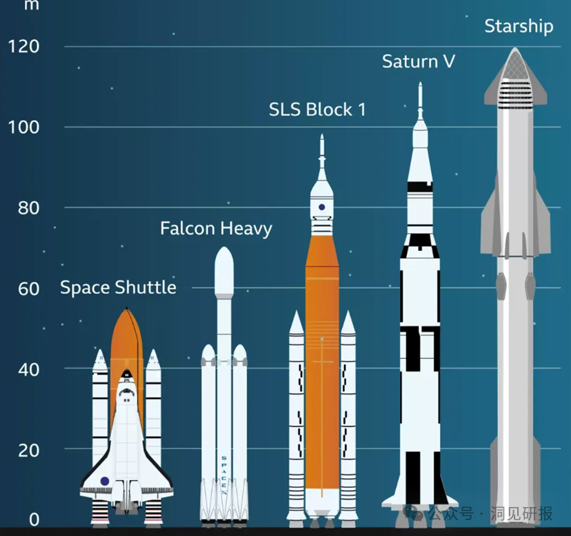 星舰是全球推力最大的火箭,总长约120米,直径约9米,由两部分组成:第一级是长约70米的“超级重型”助推器,第二级是“星舰”飞船,两级均可重复使用。