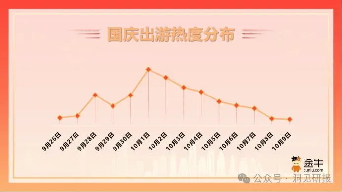 从整体趋势来看,今年国庆旅游热潮将于9月28日迎来第一波高峰,假期出游峰值则将出现在假期首日既10月1日,出游高峰将一直持续到10月4日,10月5日-7日出游人次逐渐回落。