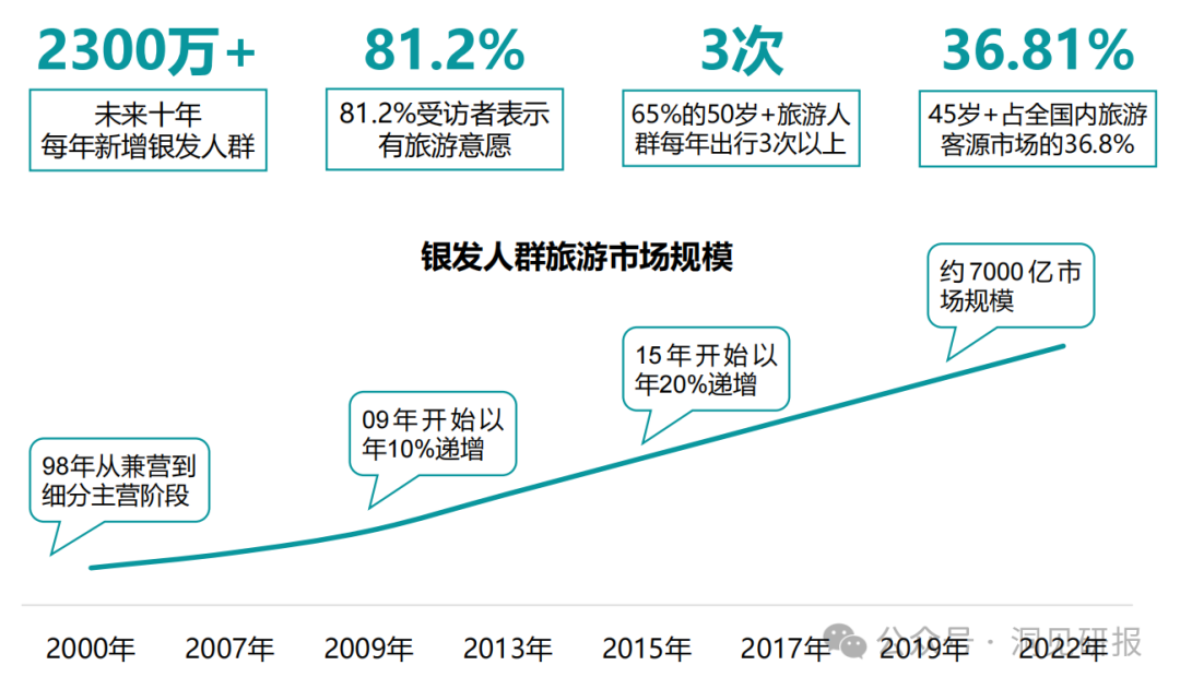 随着我国老龄化程度不断增长,更关注自我、更注重品质消费的“新老年人”群体正在壮大,观念的转变、充足的时间以及一定的储蓄与消费能力正不断影响着“银发一族”的消费意愿,“银发旅游”市场规模正逐渐壮大。