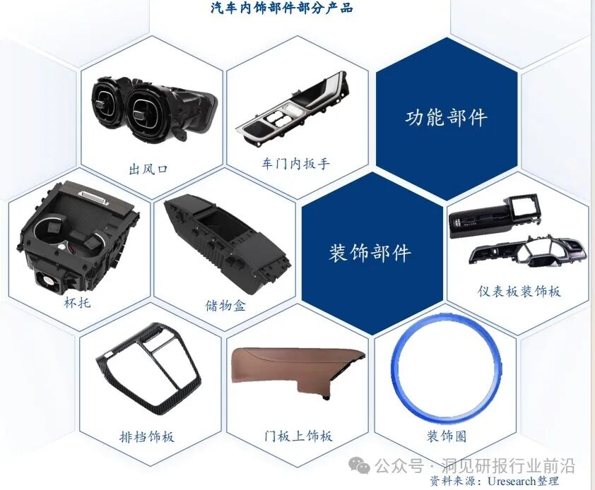 根据用途的不同,内饰部件产品可分为功能部件和装饰部件: