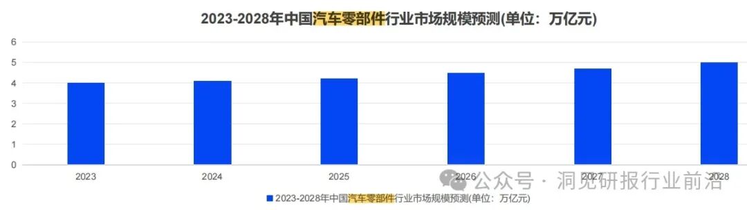 中国汽车零部件行业市场规模保持增长态势。至2028年我国汽车零部件行业主营业务收入将突破4.8万亿元。