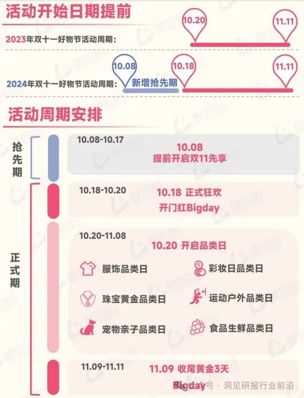 2024年,抖音电商双十一盛典的序幕将提前至10.08拉开,设立为期10天的“抢先期”,让消费者提前享受购物盛宴,同时商家需长远规划这场持久战,并提前锁定并触达高潜力消费群体。