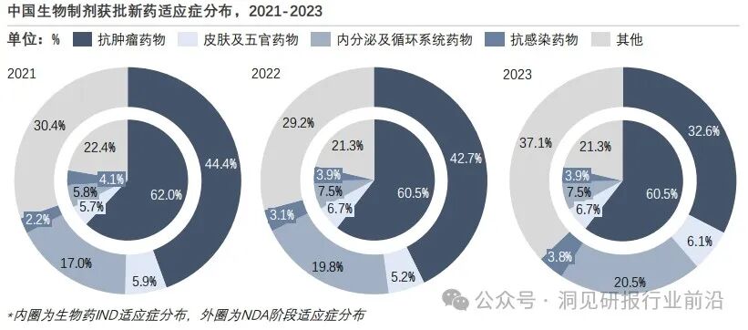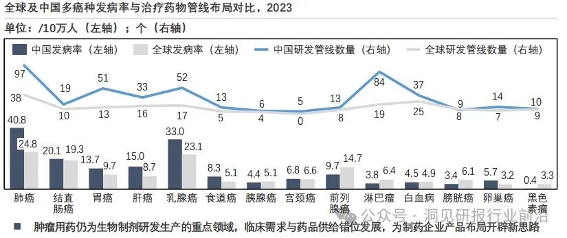 生物制剂适应症覆盖度提升,抗癌药物研发和注册上市数量仍占据主要份额药品充分供给领域与高发癌种用药需求呈现错位发展。生产企业应以技术优势带动新治疗领域拓展,填补临床未满足的用药需求。